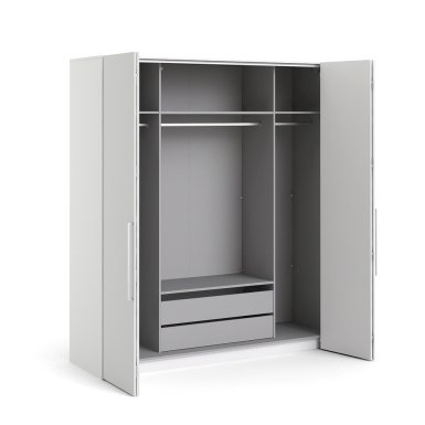 Når du skal købe et nyt garderobeskab, er det vigtigt, at du gør dig klar, hvilke mål skabet skal have, så det passer til rummet og dine behov. Vores skabe er i forskellige størrelser med forskellige dybder, bredder og højder, så de kan fungere i alle soveværelser. Vores garderobeskabe fås både med svingdøre og skydelåger. Skydelåger kan være praktisk, da det fylder mindre, når det er åbent, og derudover giver det en lækker følelse, når det skal åbnes og lukkes.
