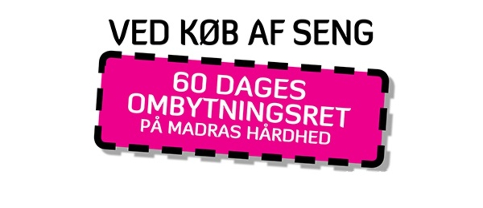 En god søvn er vigtig. Derfor er det vigtigt for os, at du sover som en drøm – hver nat. Madrassen skal hverken være for hård eller blød – den skal være helt perfekt. Hvis du opdager, at din nye madras, mod forventning, ikke passer til dine behov, har du mulighed for at ombytte madrassen indenfor 60 dage eller nætter.