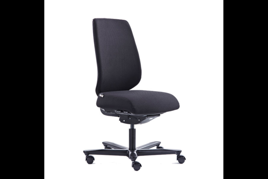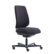 Behagelig kontorstol med en ekstrem god siddekomfort. Sædet er i memory-skum, som aflaster bagdelen og baglåret, så man kan sidde ned i længere tid. Kontorstolen har en høj beklædt ryg, højdejustering, låsbart rygvip, sædedybderegulering samt justering af ryghøjden. Stolen er sort med sort lakeret metal krydsfod og bløde hjul.