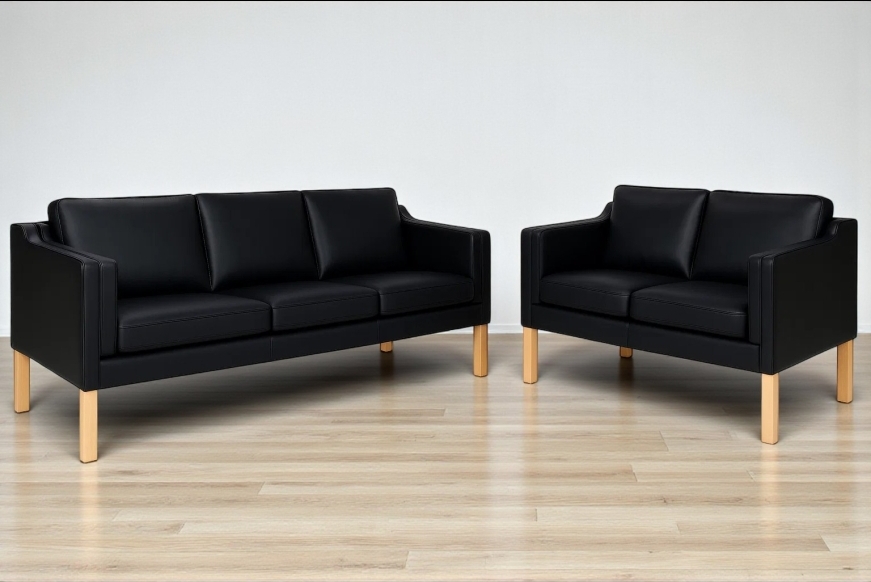 Danske klassikere 3+2 pers. original klassisk design, monteret med kampagne læder. Bemærk: UDEN keder syninger på hynderne.