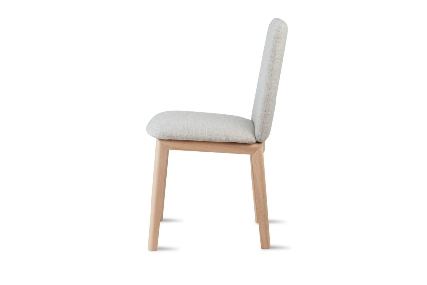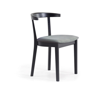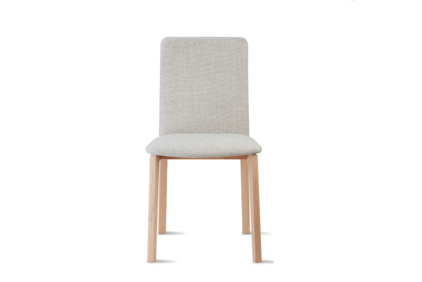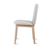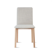 Spisestuestol med et fuldpolstret sæde med indbygget flex-funktion. Stolens træstel og det buttede sæde er rundede og giver stolen et blødt udtryk i både form og fornemmelse.