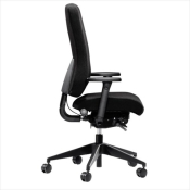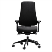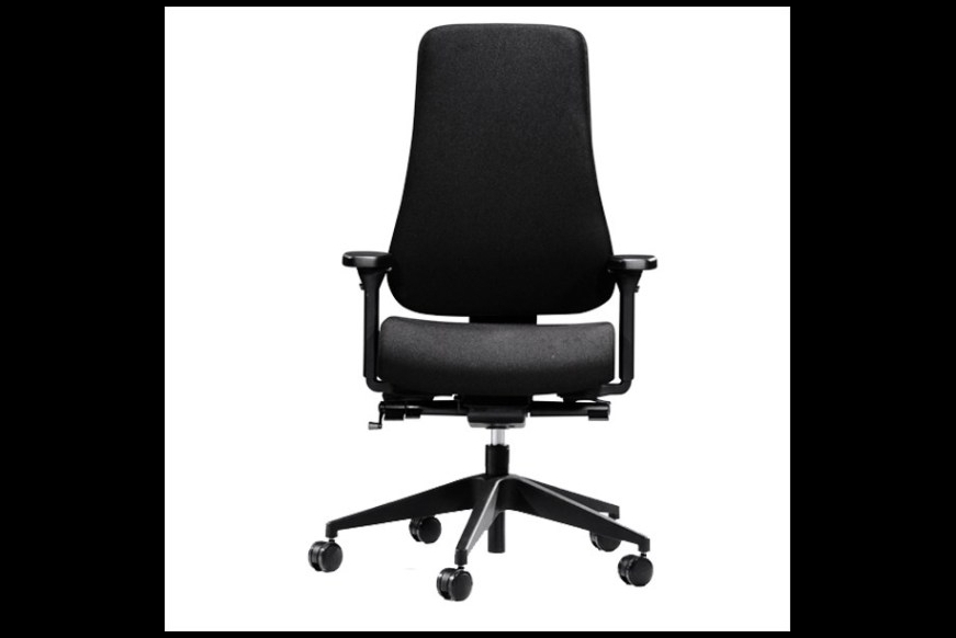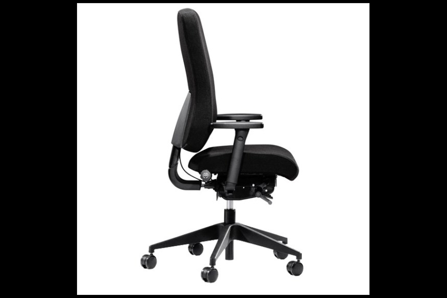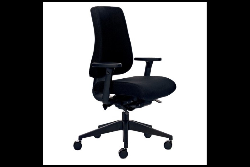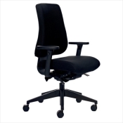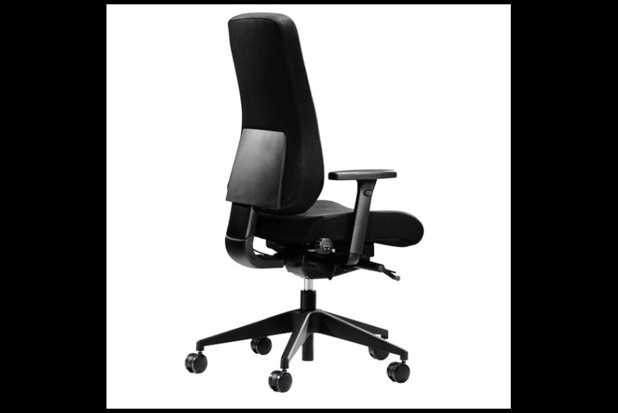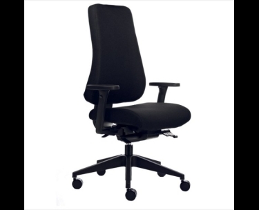 En kontorstol med meget høj komfort. Kontorstolen har mellemhøj ryg, højdejustering, synkron vippefunktion med vægtjustering. Sædevip, lændestøtte, sædedybderegulering samt justering af ryghøjden.