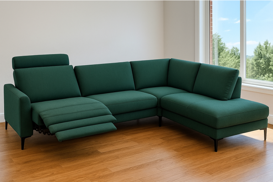 Openend / hjørnesofa, med EL i sæde. monteret med stof. Fås også i læder.