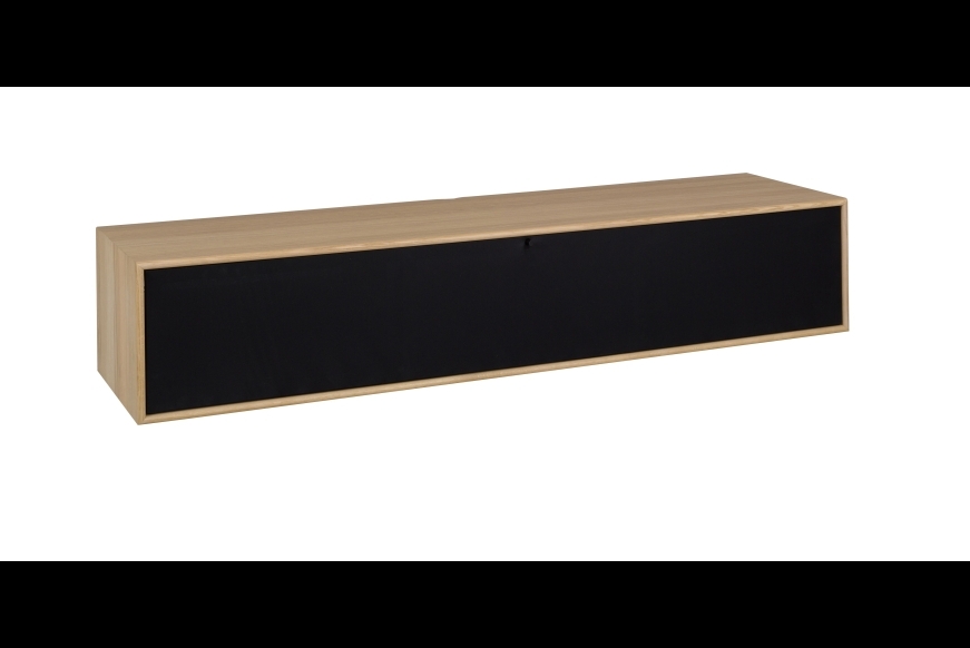 Mediemøbel med 1 stofklap i enten cura stof eller sort IR stof, skriv hvilken i kommentarfeltet. Kabinettet har elegante geringssamlinger på hjørner og afrundet forkant. Inkl. vægophæng - understel i træ eller metal kan bestille separat - spørg gerne og vi finder den løsning, som passer bedst hjemme hos dig.
